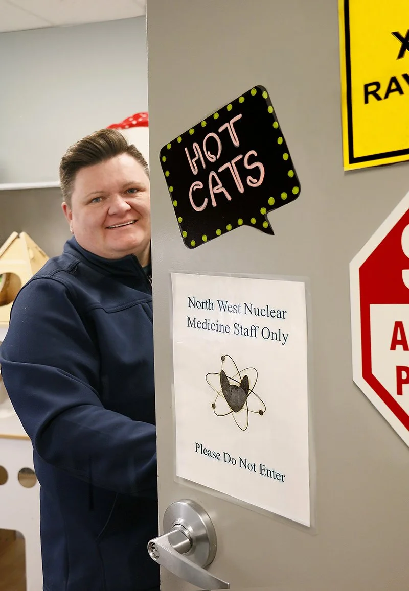 After treatment, the cats emit small amounts of radiation for a short time. They need to stay with us so we can safely collect their radioactive waste and until their radiation levels drop below the threshold where they are safe to go home. While hospitalized, your cat will be monitored by licensed and experienced veterinary technicians and veterinarians.